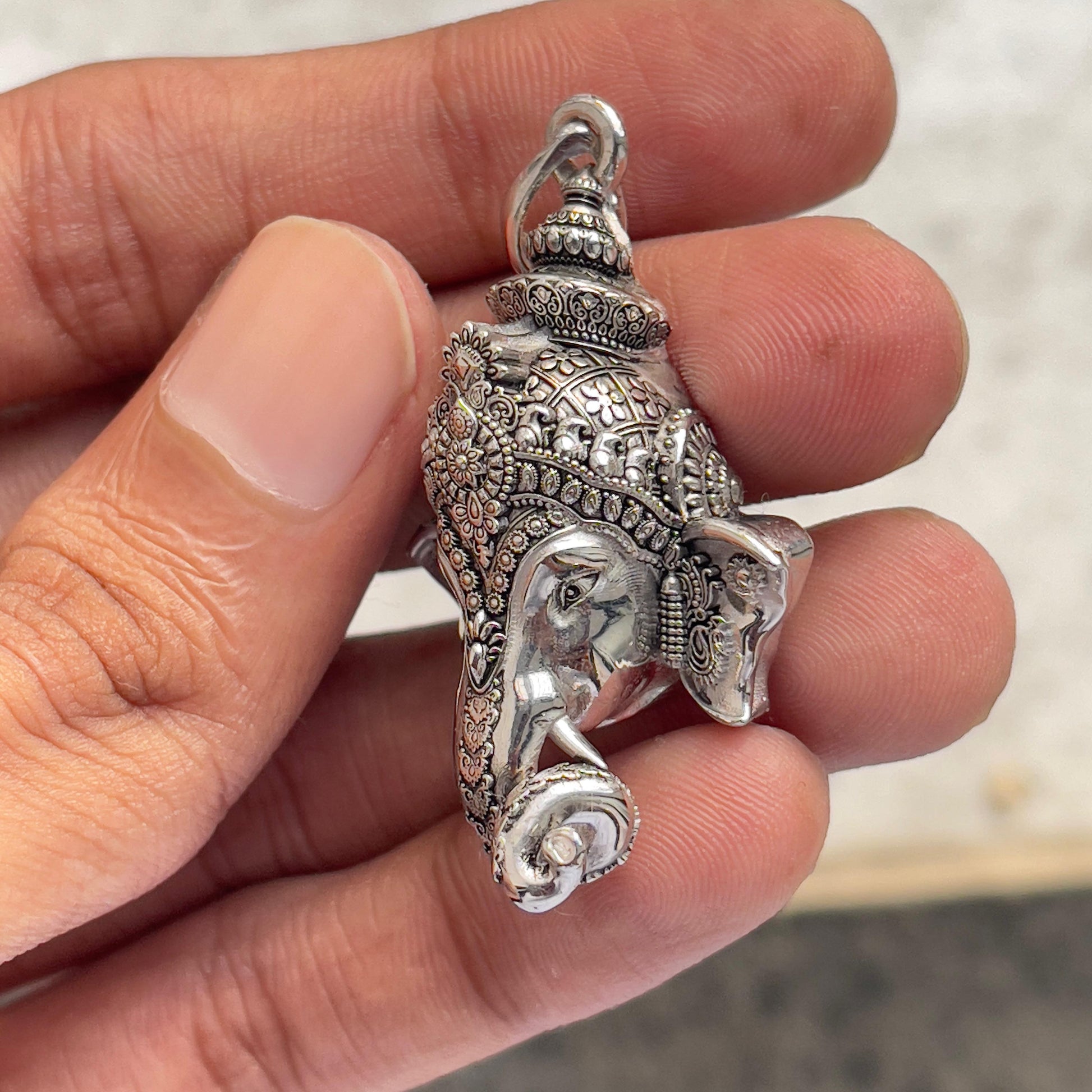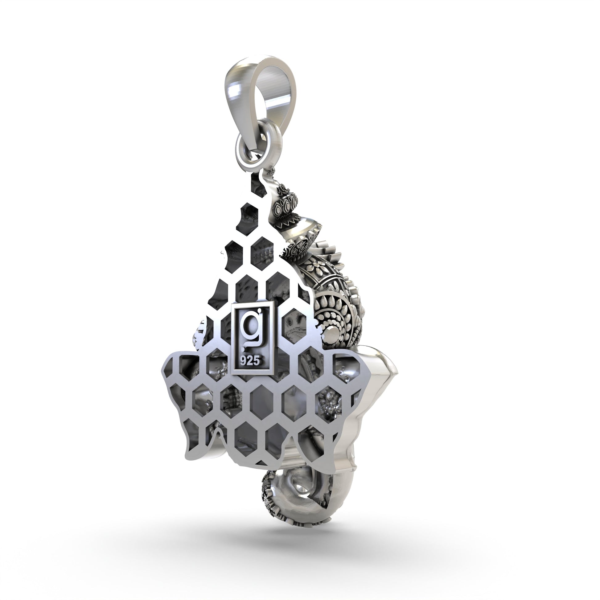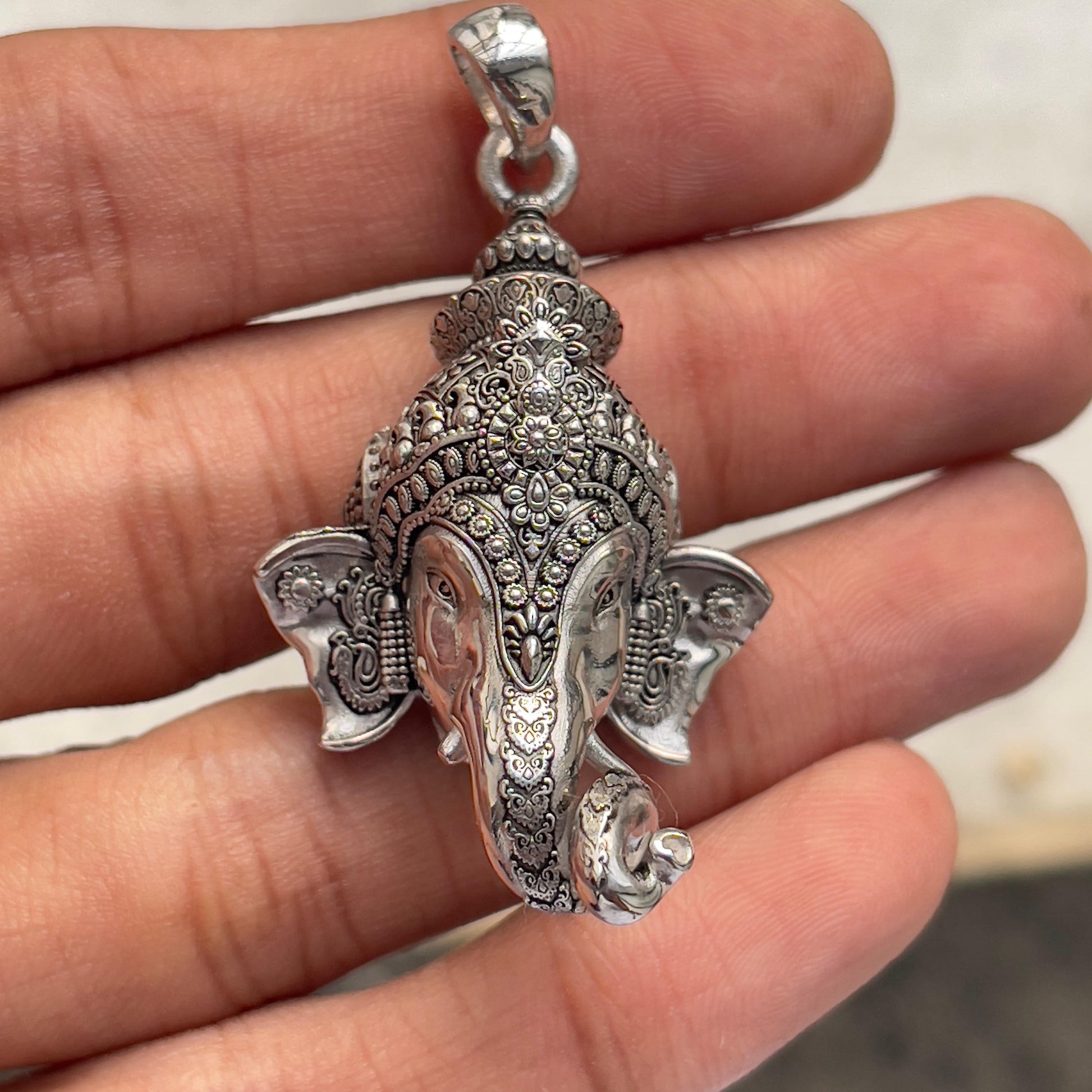Capture the divine essence of Lord Ganesha with our exquisite 925 Silver Ganpati Face Pendant. This intricately handcrafted pendant measures 40mm (1.5 inches) and features a detailed depiction of Ganesha's face, symbolizing wisdom, prosperity, and spiritual guidance.