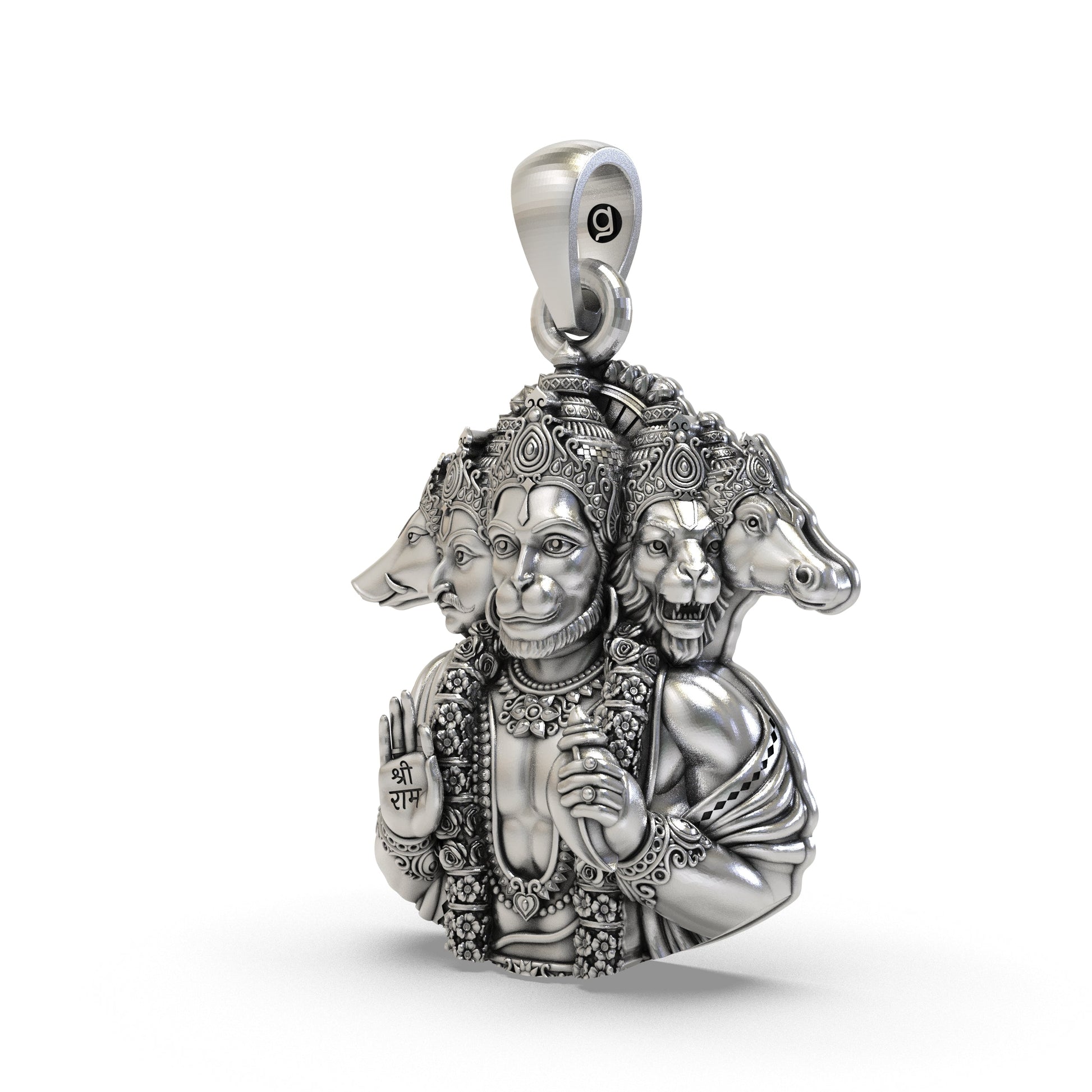 925 Silver Panchmukhi Hanumanji Pendant - A Symbol of Strength and Protection"