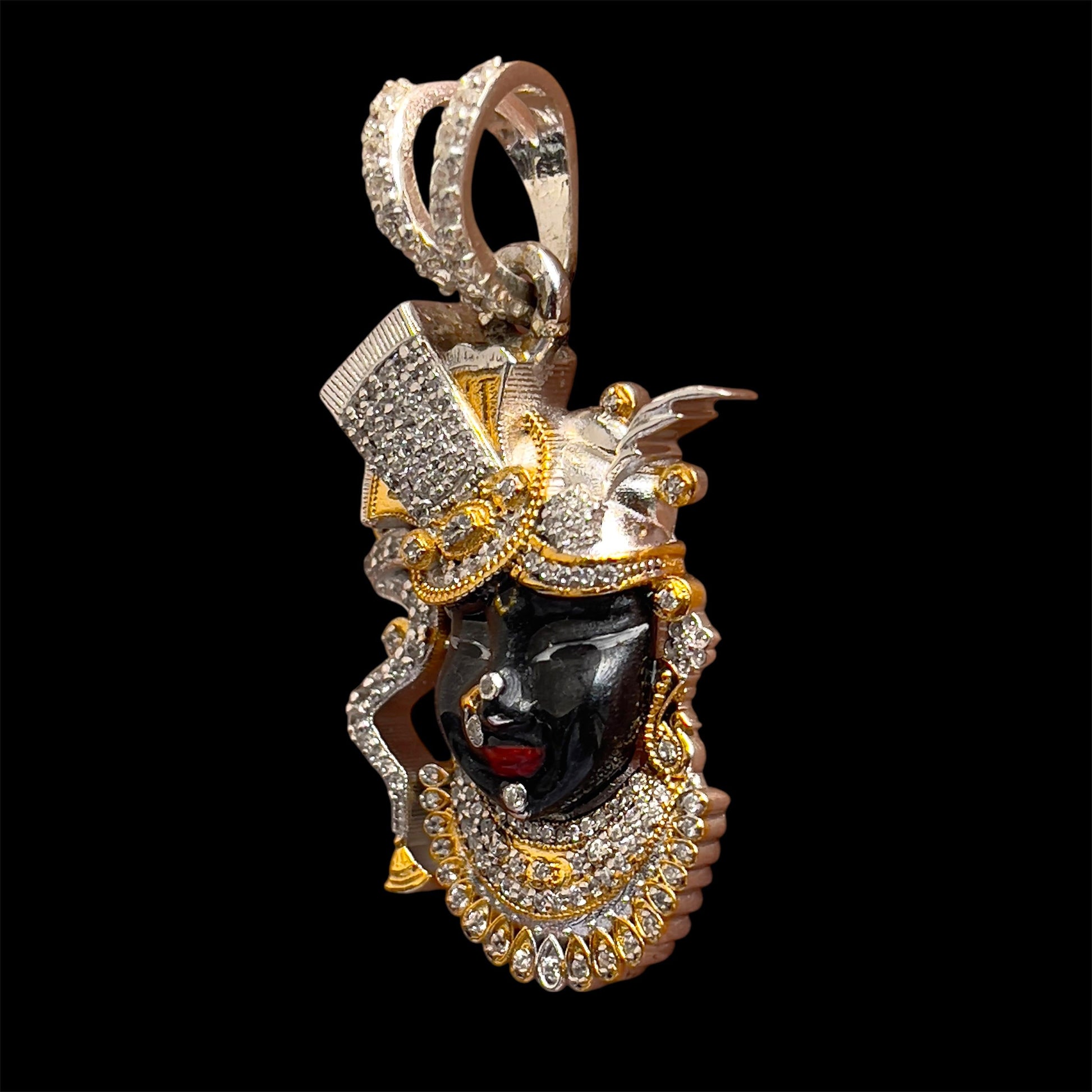 925 Silver Shrinathji Face Pendant with Premium Enamel & High-Quality Diamond Work
