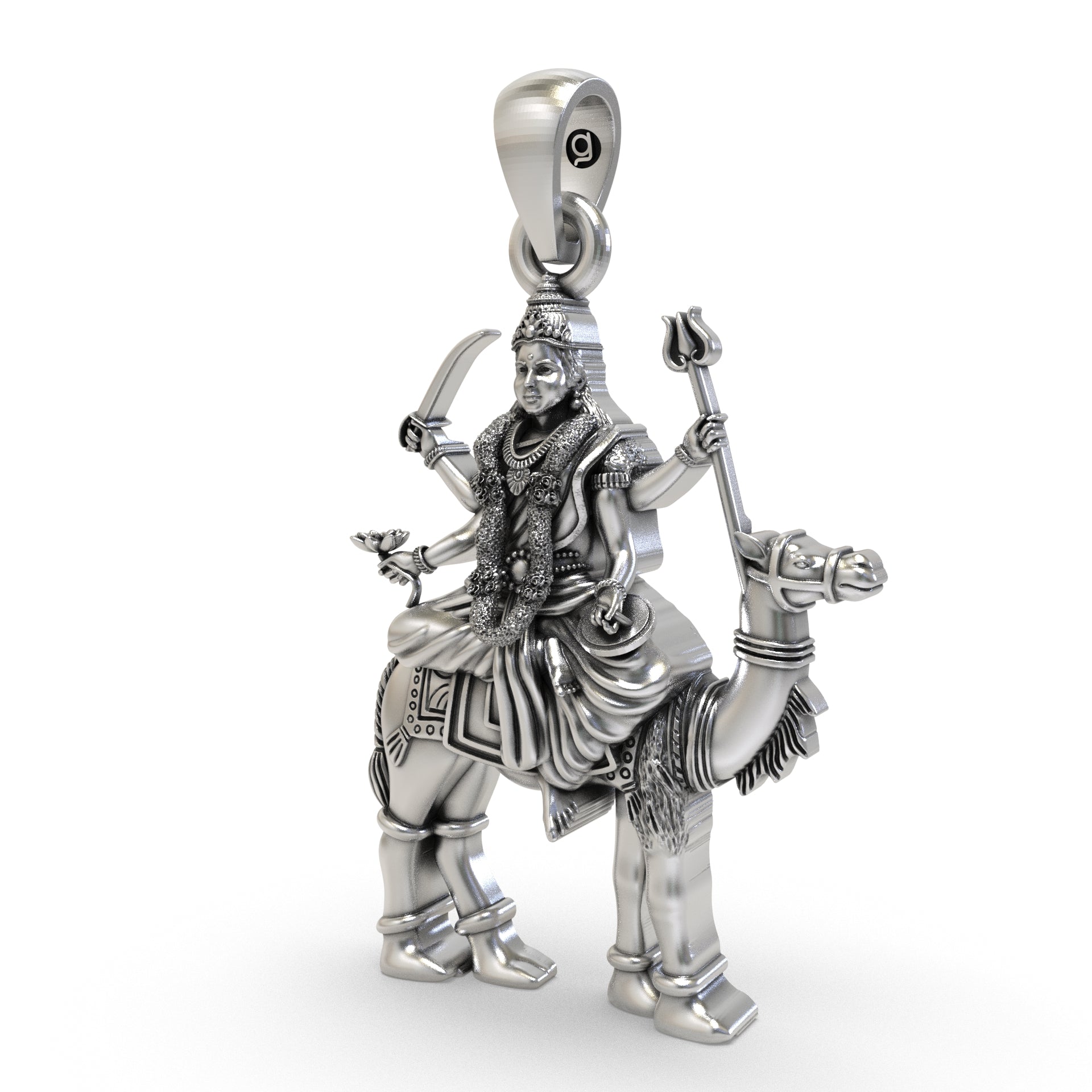 This pendant measures 1.25 inches and is made from high-quality 925 sterling silver, offering both durability and an elegant shine. The intricate details of Momai Maa’s image are meticulously crafted, highlighting her serene yet powerful expression. The polished silver finish enhances the beauty of the pendant, making it a perfect accessory for daily wear or religious occasions.