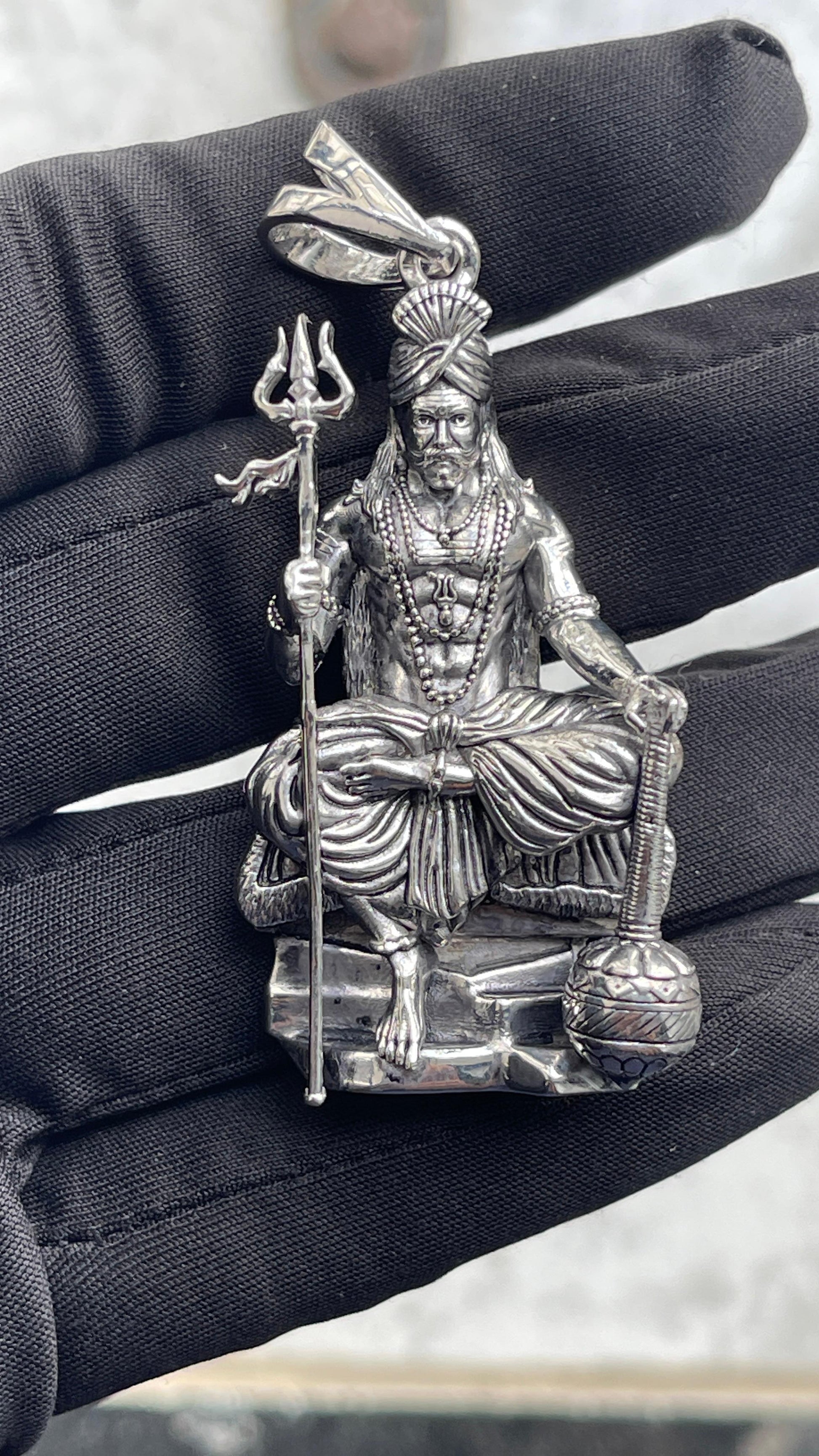 Honor Lord Muniswarar with this unique men's locket pendant, crafted from gleaming 925 sterling silver. Crafted for daily wear or puja ceremony, this exquisite locket features a detailed depiction of Muniswarar, the Hindu deity of justice and fairness. The locket measures 2 inch and boasts a secure clasp. Embrace your faith in style or gift this meaningful piece to a loved one. Order yours today!