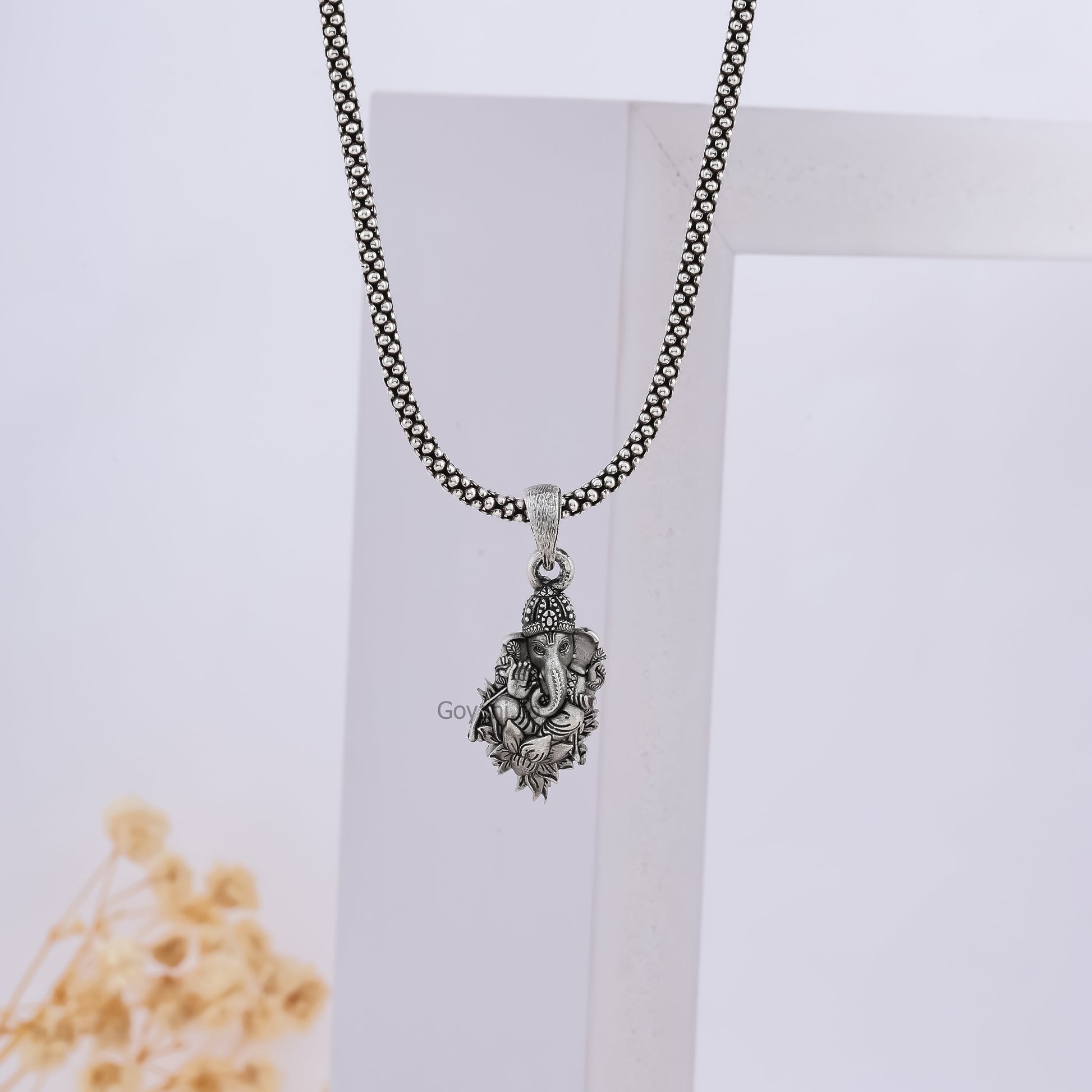 Description: Experience the divine presence of Lord Ganesha with our Ganesha Sitting On Lotus Flower Pendant, a sacred emblem of purity, auspiciousness, and divine blessings. Crafted with meticulous detail and reverence, this pendant serves as a tangible symbol of devotion and spiritual connection.