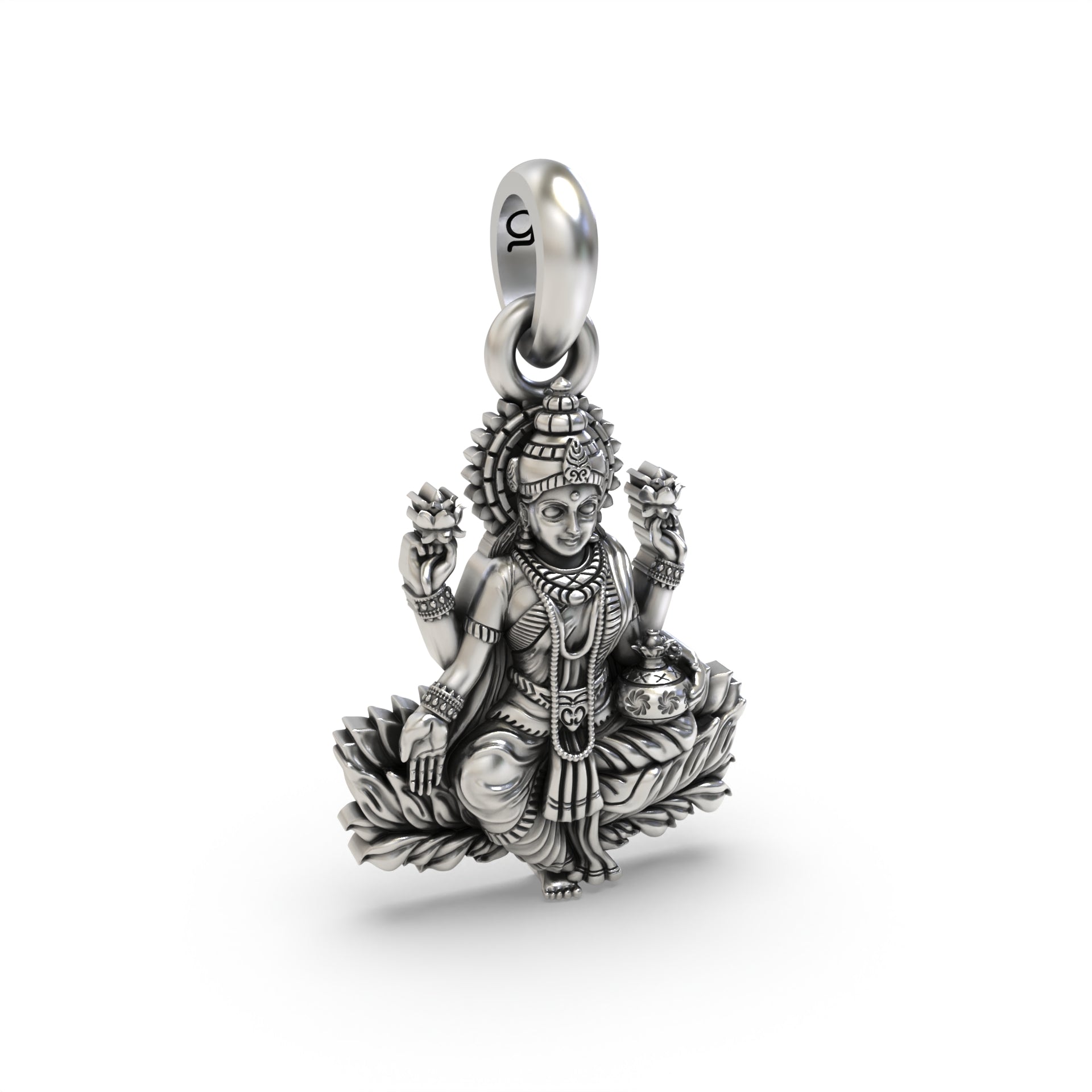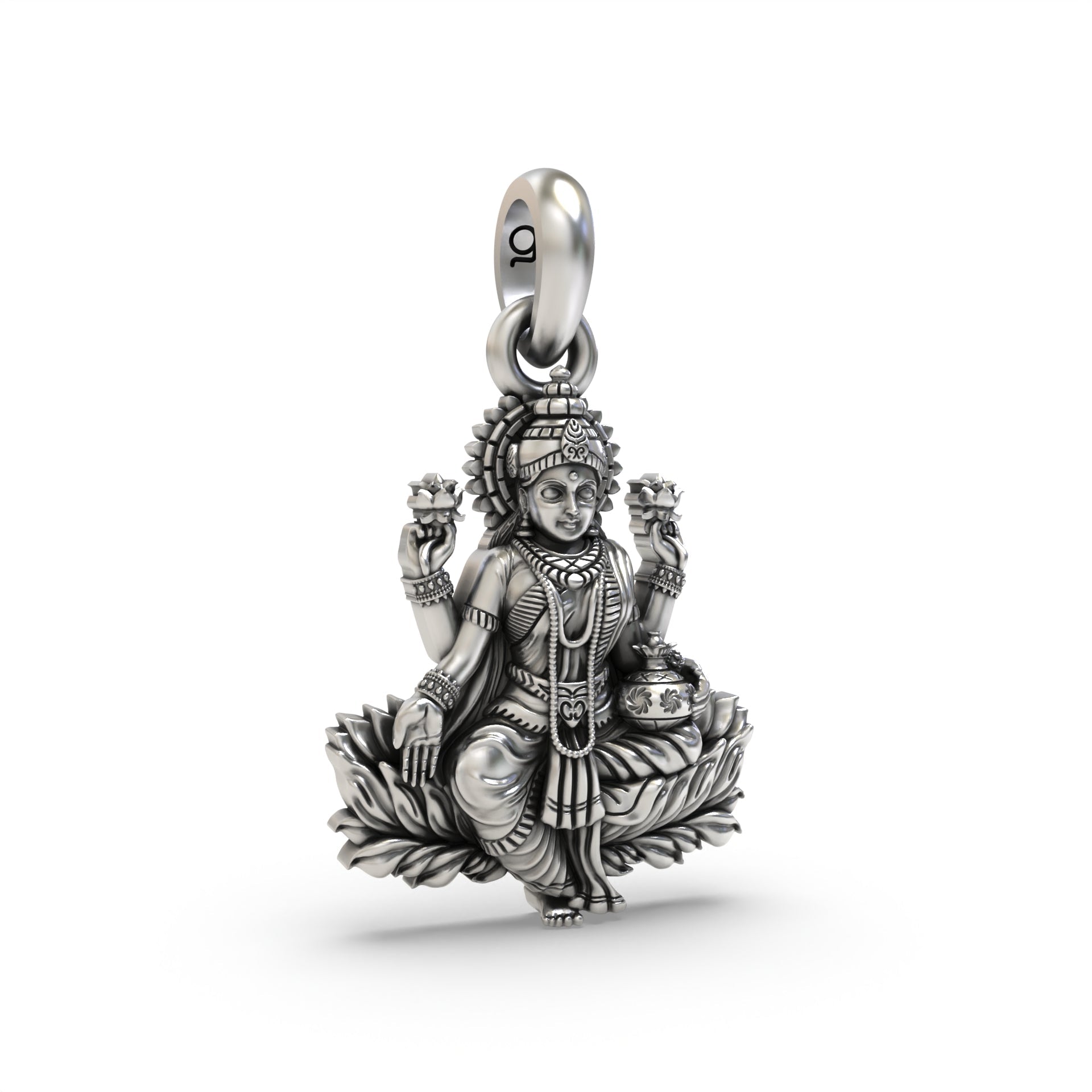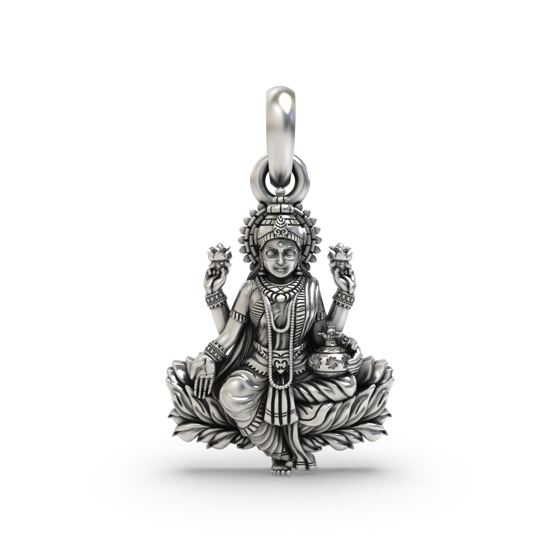 Description: Illuminate your spiritual path with the divine grace of Goddess Lakshmi embodied in our Luminous Lotus Silver Pendant. Crafted with precision and reverence, this pendant serves as a radiant symbol of prosperity, abundance, and spiritual enlightenment.