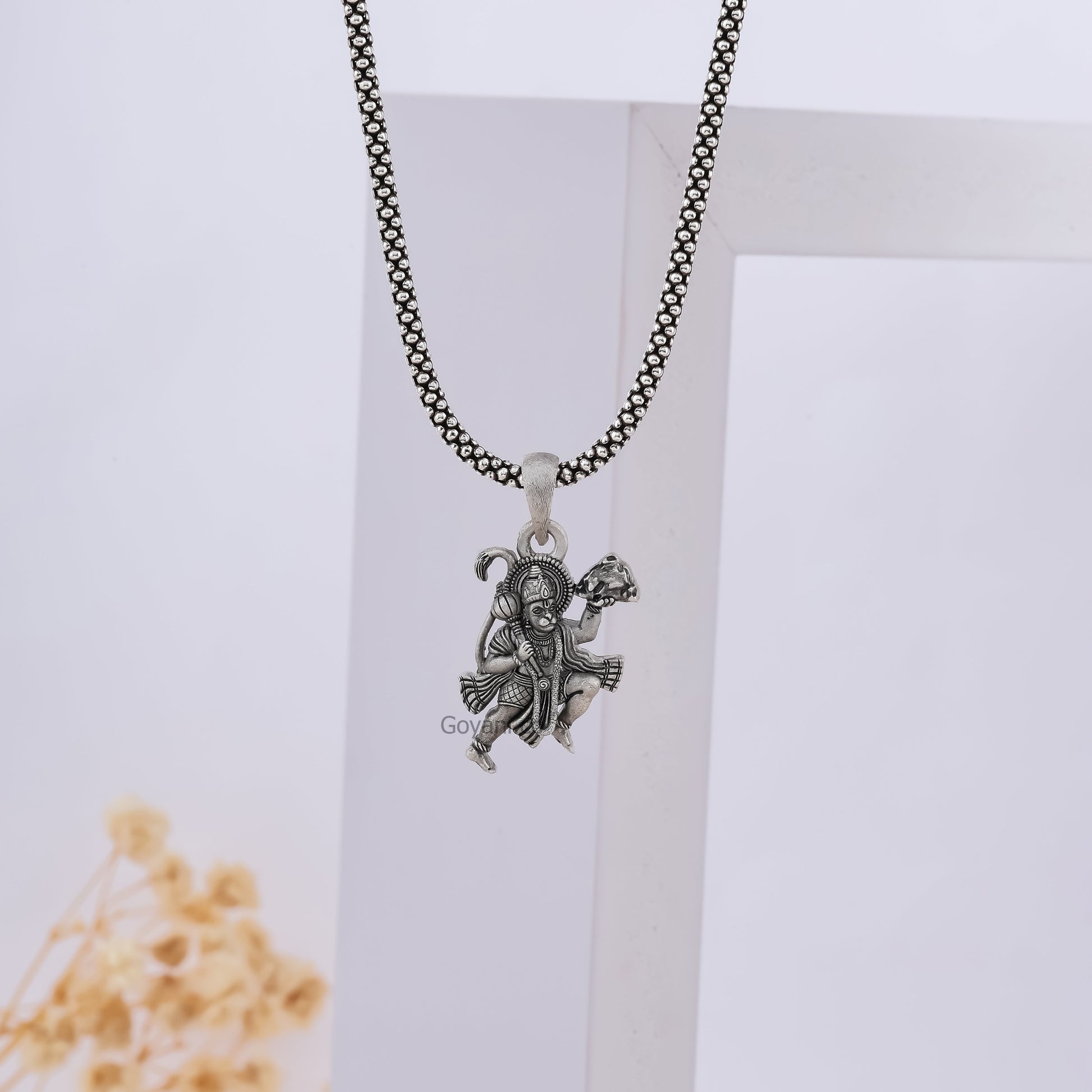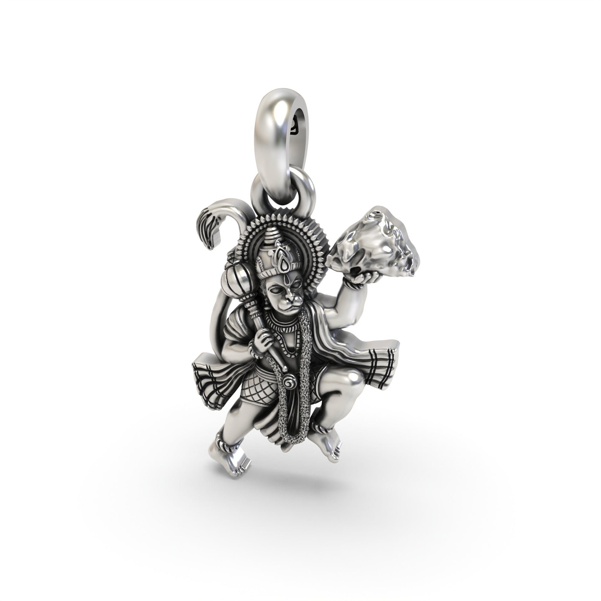 Description: Experience the divine energy and courage of Lord Hanuman with our Silver Flying Hanumanji Pendant, a sacred emblem of strength, devotion, and divine blessings. Crafted with meticulous detail and reverence, this pendant serves as a tangible representation of devotion and spiritual connection.