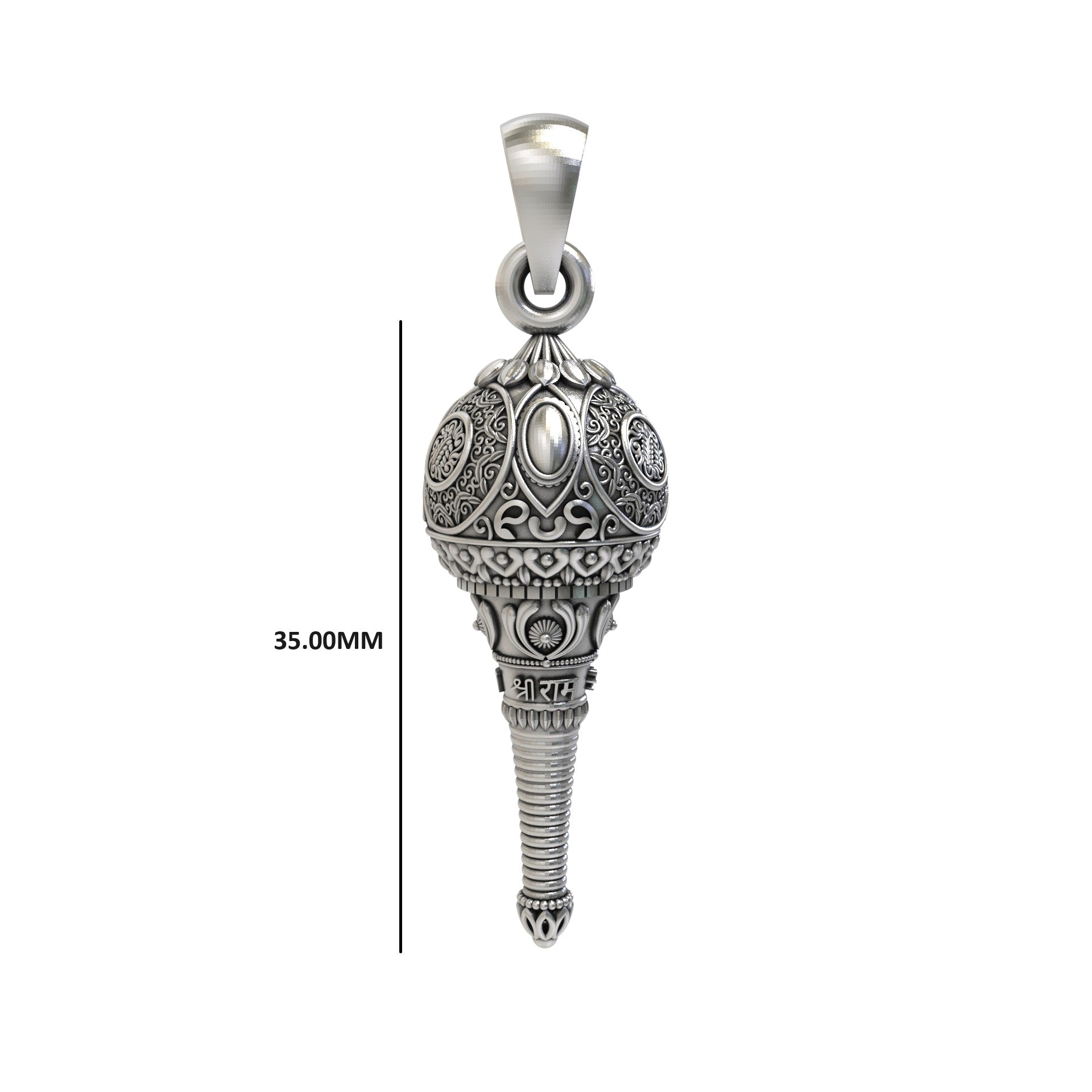 Description: Embrace the strength and courage of Lord Hanuman with our Silver Hanumanji Gada Pendant. This meaningful accessory features Hanuman's gada, a symbol of his power and devotion, capturing the essence of his legendary might and blessings.