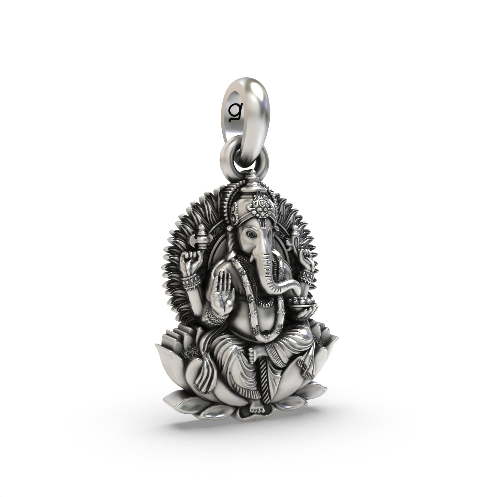 Silver Lord Ganesha On Lotus Pendant