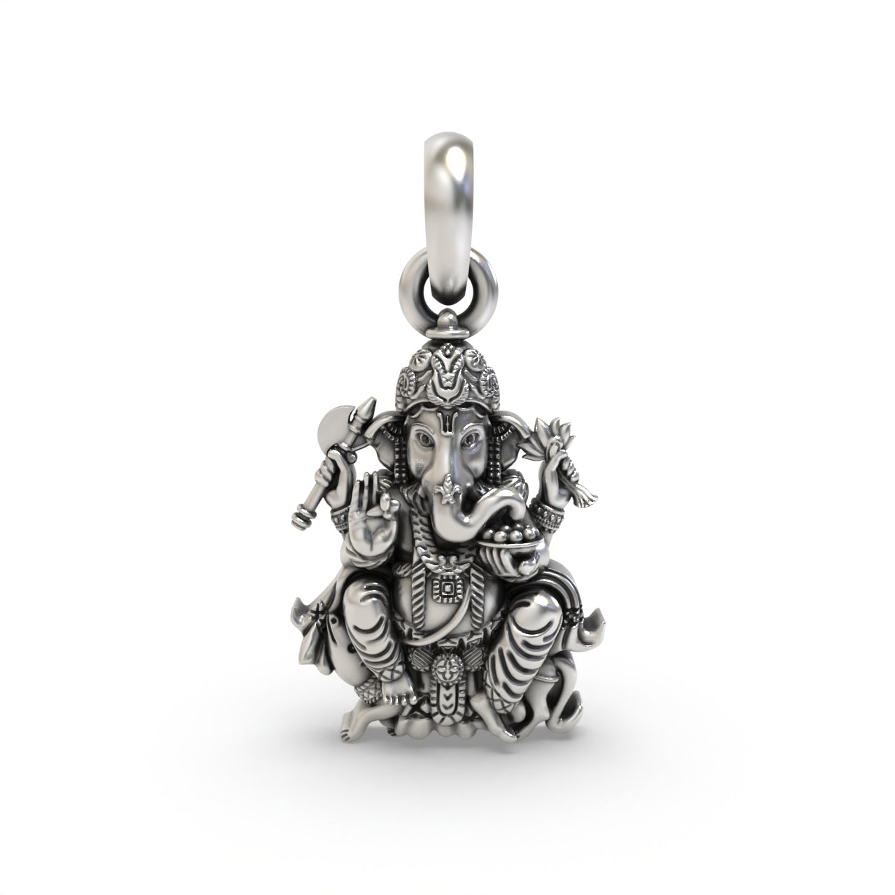 Description: Invite the divine blessings of Lord Ganesha into your life with our Silver Lord Ganesha Sitting On Mushak Pendant, a sacred emblem of wisdom, auspiciousness, and divine guidance. Crafted with meticulous detail and reverence, this pendant serves as a tangible symbol of devotion and spiritual connection.