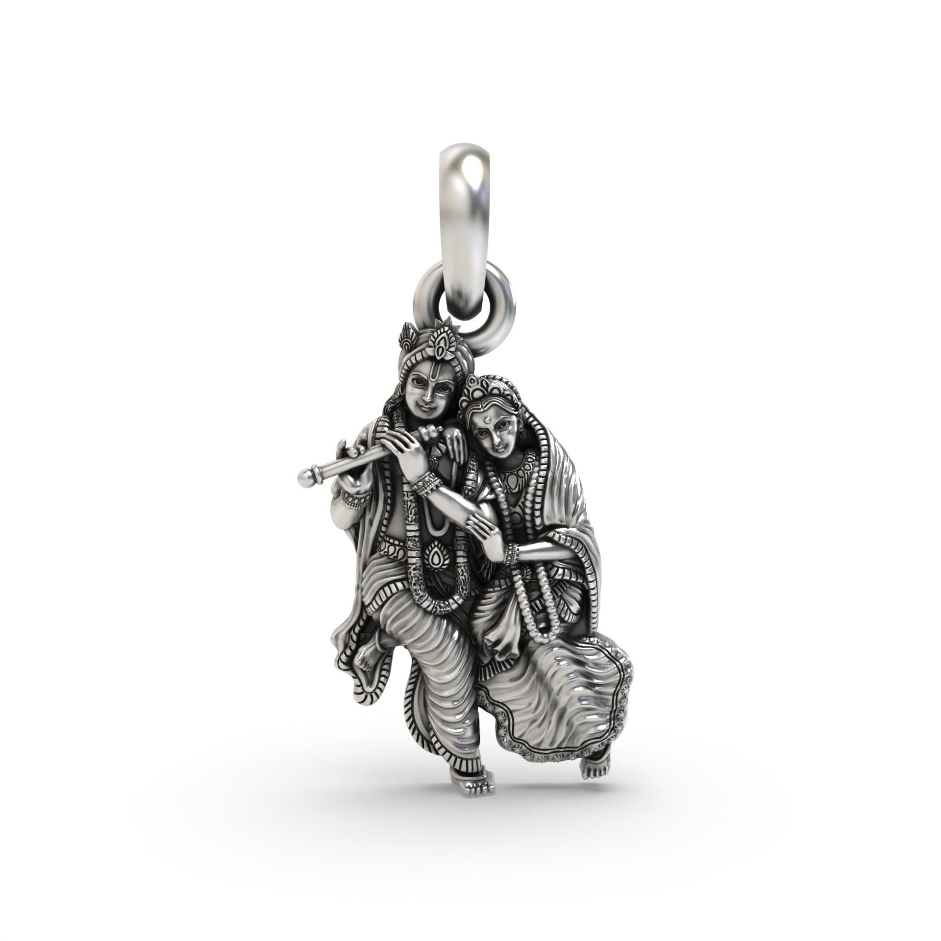 Description: Celebrate divine love and devotion with our Silver Radha Krishna Pendant, a sacred symbol of eternal affection and spiritual connection. Meticulously crafted in sterling silver, this pendant captures the divine essence of Radha and Krishna, the epitome of love and devotion in Hindu mythology.
