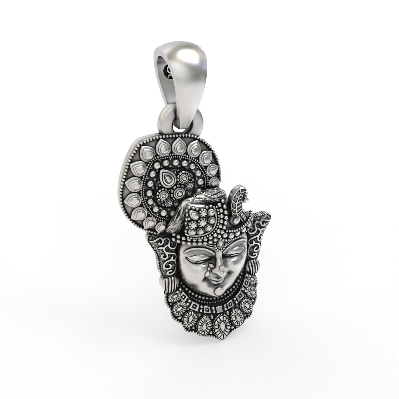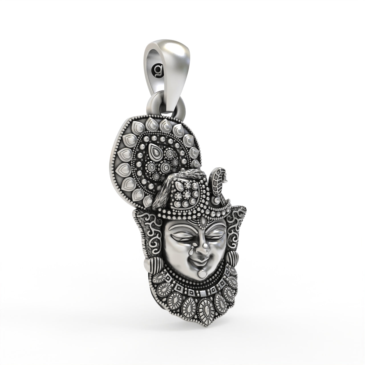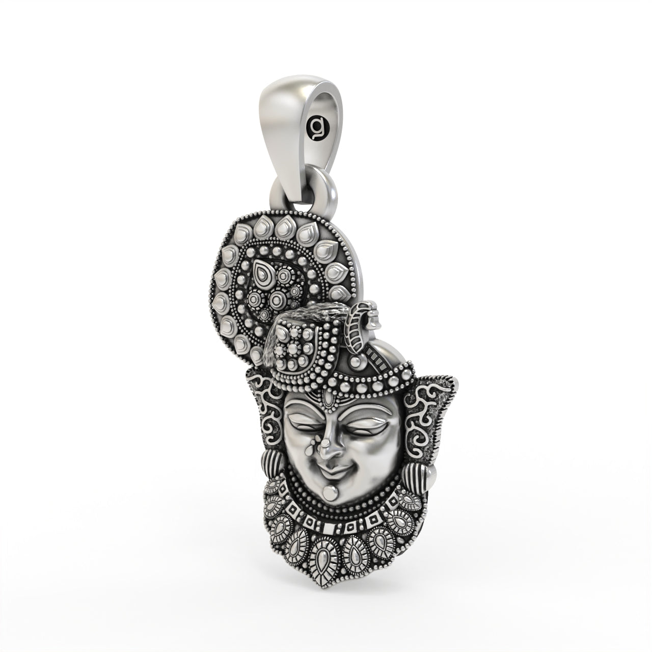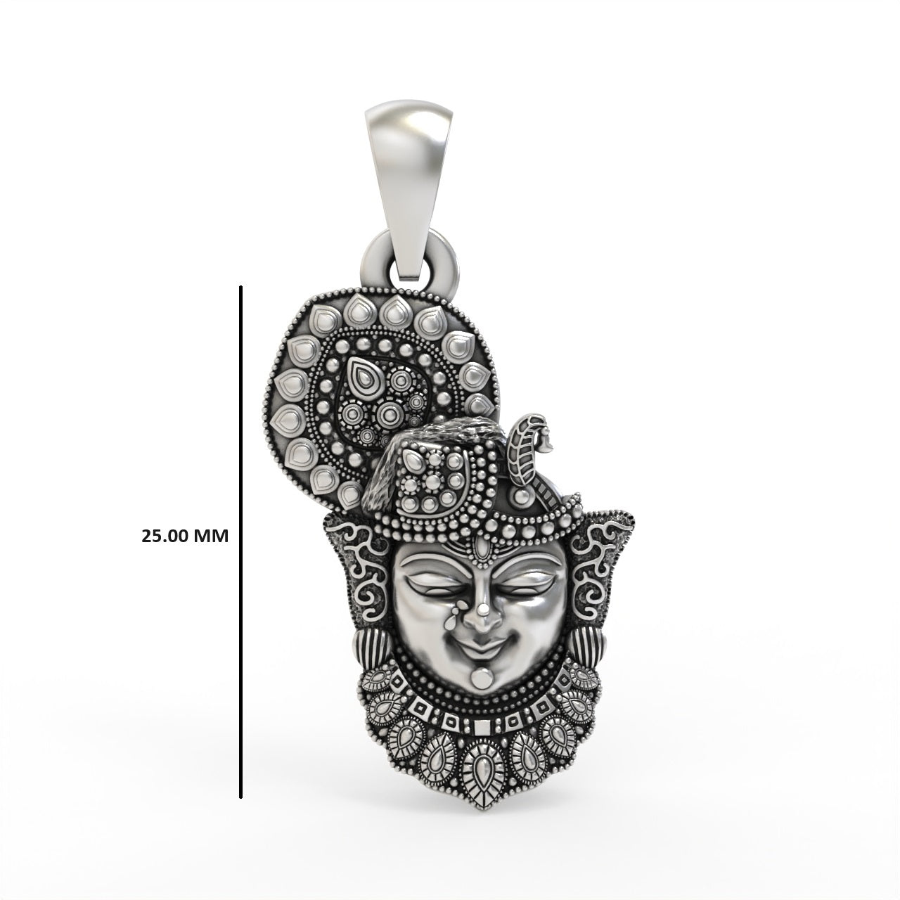 Description: Introducing the Silver Shrinathji Face Pendant, a sacred symbol of devotion and spirituality, capturing the divine countenance of Lord Shrinathji. Crafted with meticulous detail and profound reverence, this pendant serves as a tangible representation of spiritual connection and reverence.